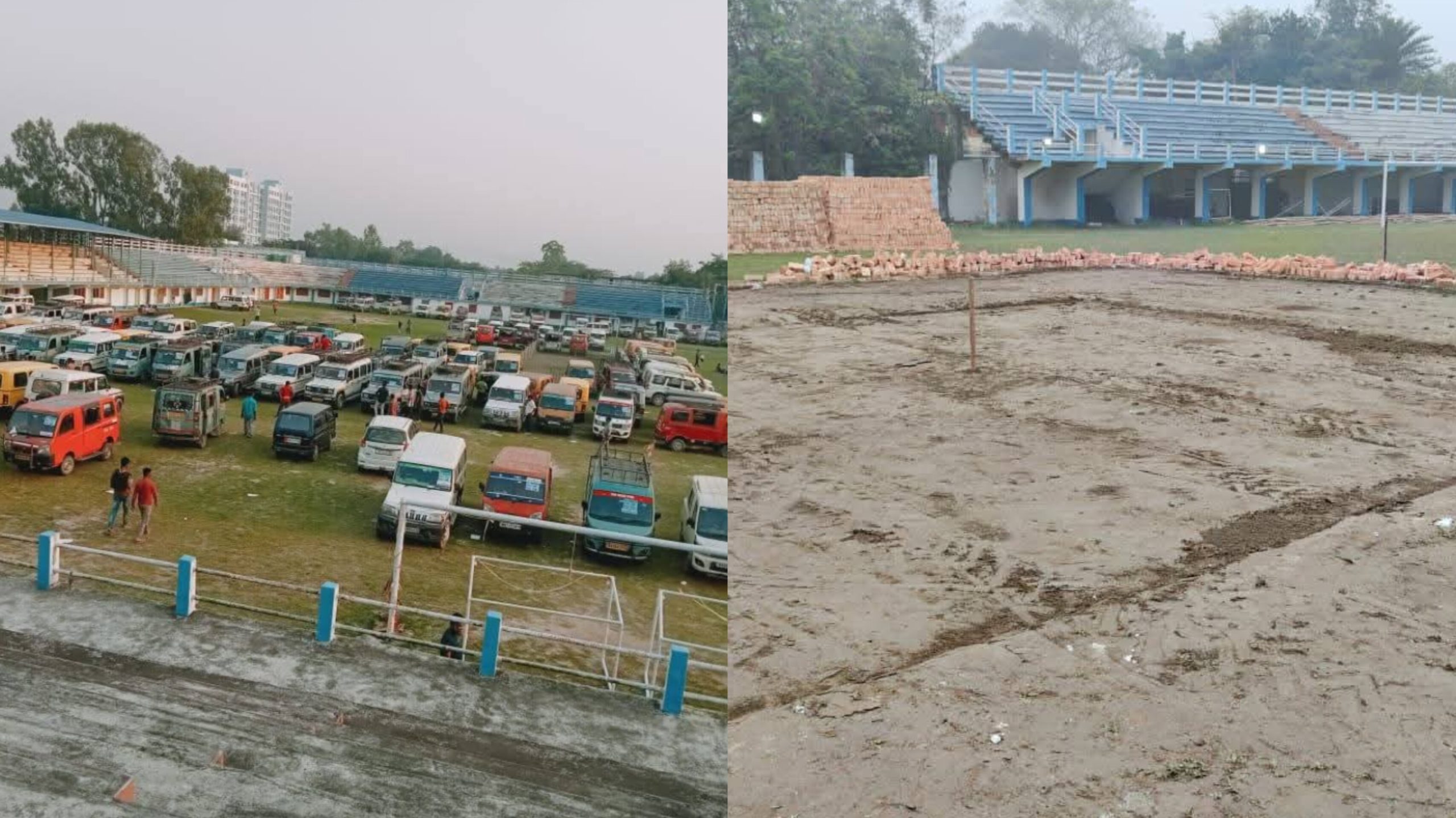 জানা গিয়েছে, সম্প্রতি স্টেডিয়াম প্রাঙ্গণে হেলিপ্যাড তৈরি থেকে শুরু করে একাধিক রাজনৈতিক দলের সভা অনুষ্ঠিত হয়েছে। বড় বড় রাজনৈতিক নেতৃত্বদের আগমন ছাড়াও মঙ্গলবার বিকেল থেকে স্টেডিয়ামের খেলার মাঠ সহ গোটা এলাকা জুড়ে ছোট-বড় অসংখ্য গাড়ি দাঁড়িয়ে থাকতে দেখা যায়। এর ফলে নিয়মিত কোচিং বন্ধ রাখতে বাধ্য হয়েছেন খুদে খেলোয়াড়রা। এতে ক্ষুব্ধ হয়ে উঠেছেন অভিভাবকেরাও। বড় বড় গর্ত থেকে ক্ষতি হয়েছে ঘাসেরও। এতে খেলোয়াড়দের চোট লাগতে পারে।